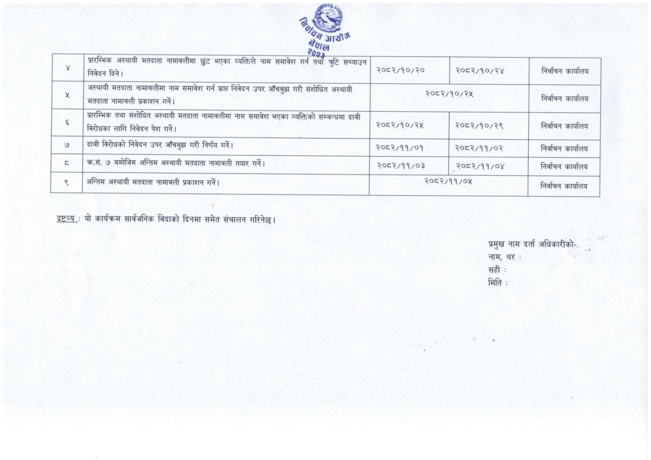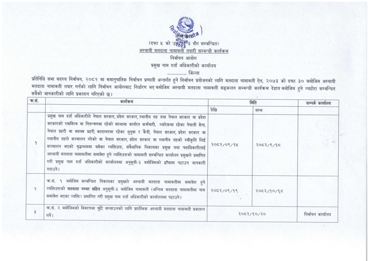 » अस्थायी मतदाता नामावली तयारी सम्बन्धी कार्यक्रम सम्बन्धी सूचना.