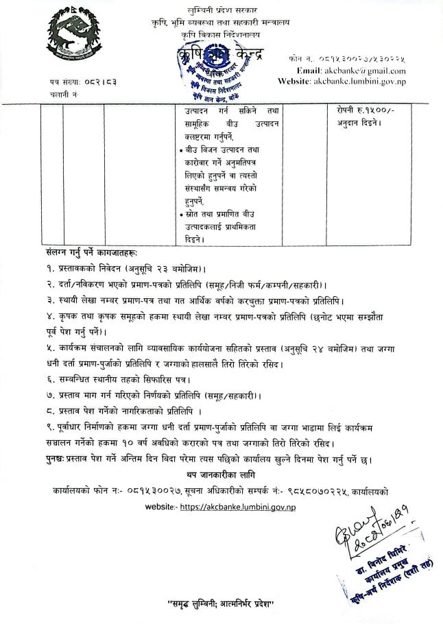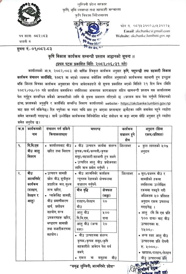 » कृषि विकास कार्यक्रम सम्बन्धी प्रस्ताव आह्वानको सूचना.