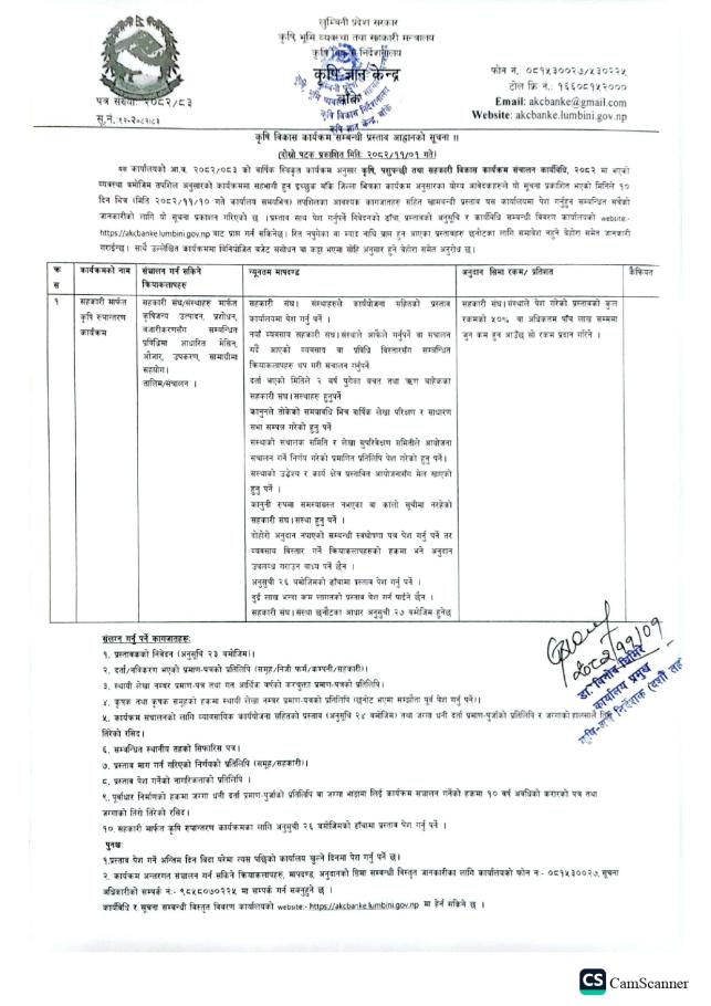 कृषि विकास कार्यक्रम सम्बन्धी प्रस्ताव आह्वानको सूचना.
