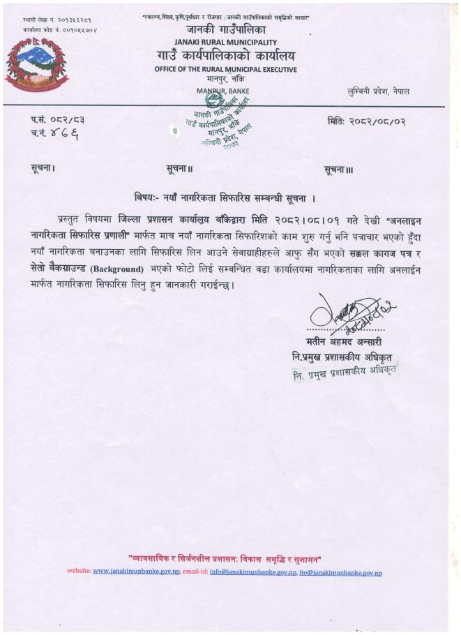 नयाँ नागरिकता सिफारिस सम्बन्धी सूचना.