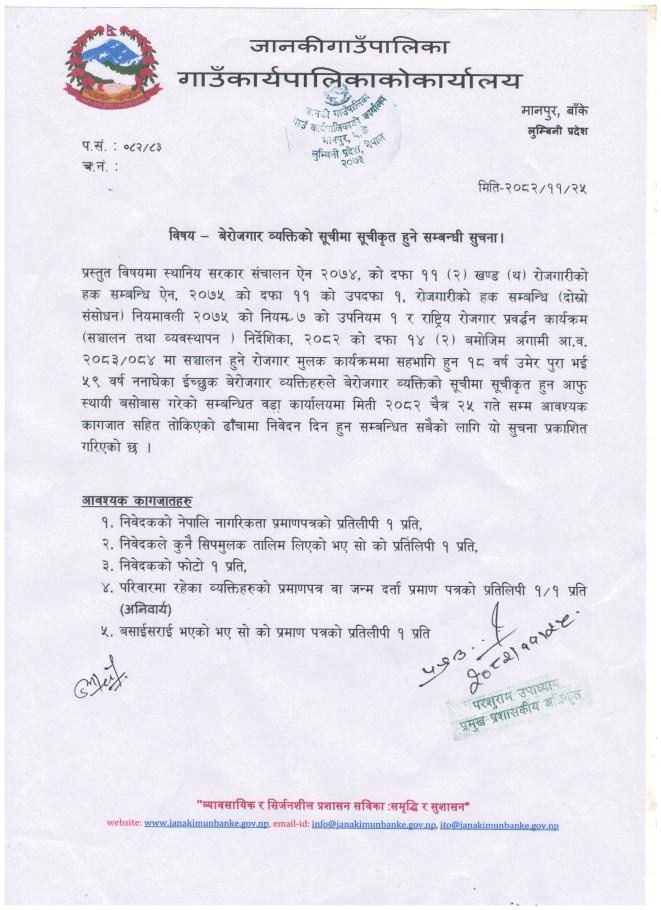बेरोजगार व्यक्तिको सूचीमा सूचीकृत हुने सम्बन्धी सूचना.