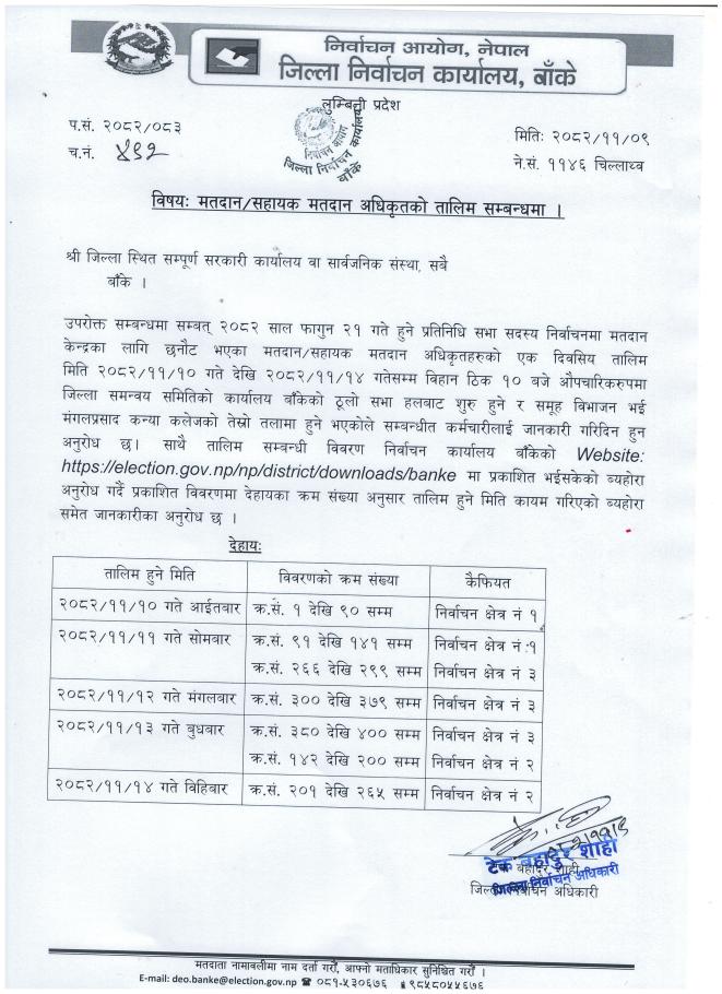 मतदान/सहायक मतदान अधिकृतको तालिम सम्बन्धी सूचना.