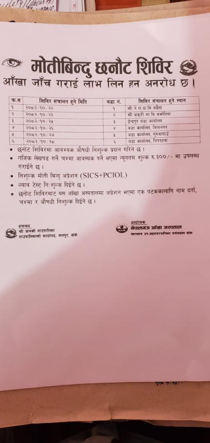 » मोतीबिन्दु छनौट शिविर सम्बन्धी सूचना.