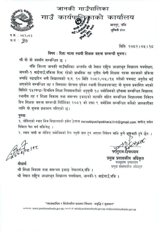 » रिक्त पदमा स्थायी शिक्षक सरुवा सम्बन्धी सूचना.