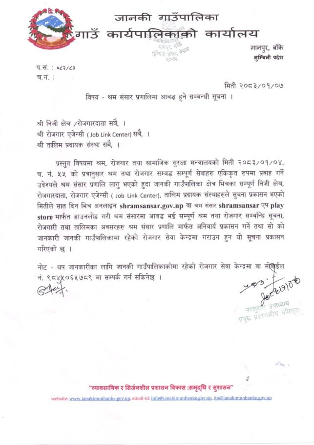 श्रम संसार प्रणालीमा आबद्ध हुने सम्बन्धी सूचना.