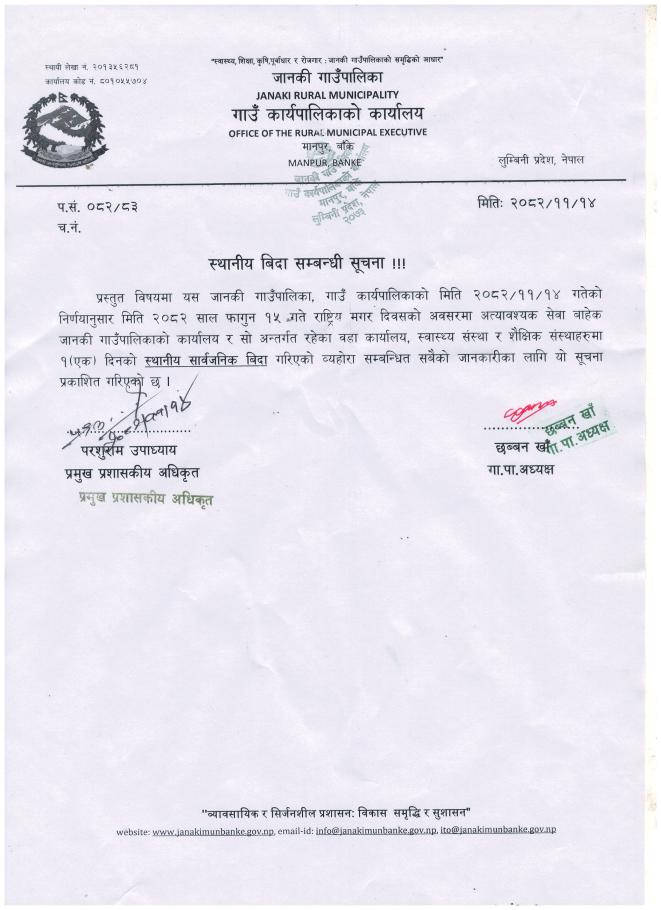 स्थानीय बिदा सम्बन्धी सूचना.