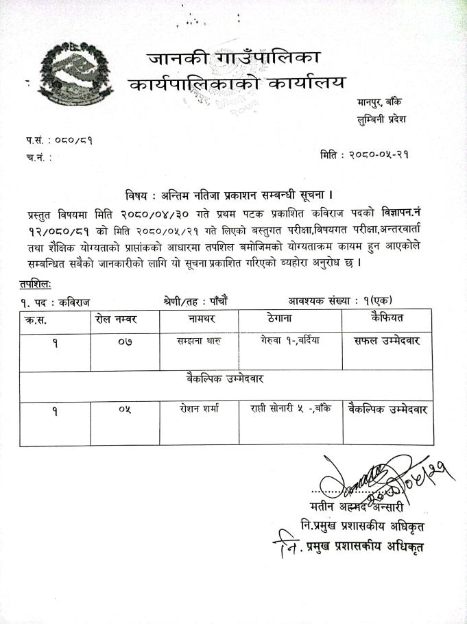 » अन्तिम नतिजा प्रकाशन सम्बन्धी सूचना.