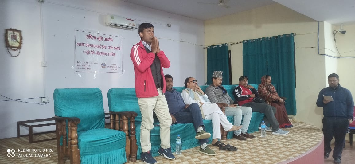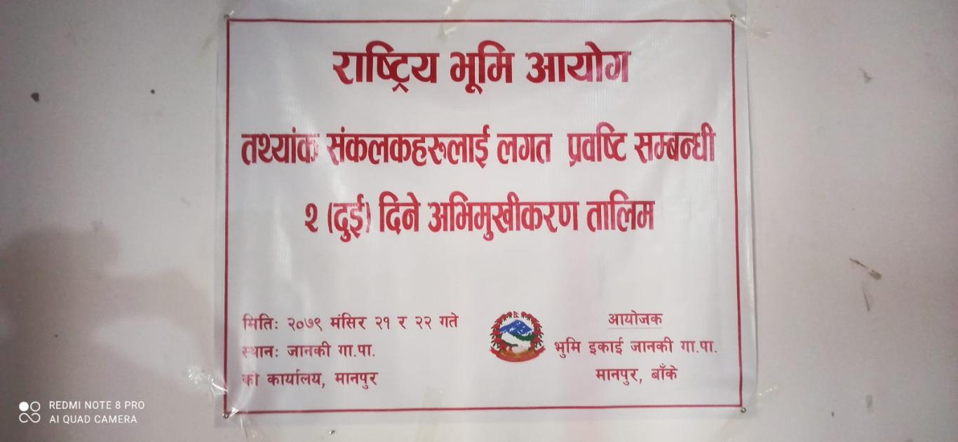 आज मिति २०७९ मंसिर २१ गते देखि भूमि इकाई जानकी गा.पा.को आयोजनामा तथ्यांक संकलकहरुलाई लगत प्रवष्टि सम्बन्धी २(दुई) दिने अभिमुखीकरण तालिमका केही तस्बिरहरु.
