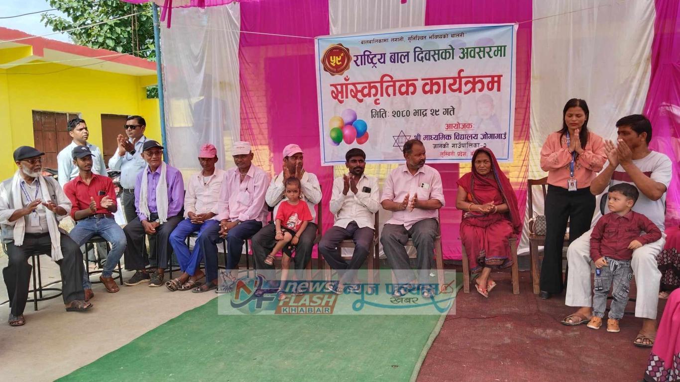 आज मिति २०८० भाद्र २९ गते जानकी गाउँपालिका अन्तर्गत श्री मा.वि.जोगागाउँ जानकी २ को आयोजनामा ५९औं राष्ट्रिय बालदिवसको अवसरमा आयोजित सांस्कृतिक कार्यक्रम भव्य रुपमा सम्पन्न भएको केही तस्बिरहरु.
