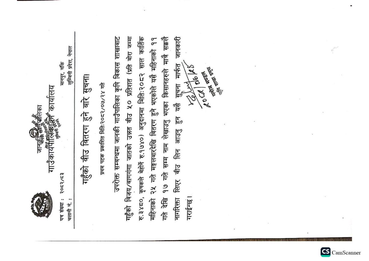 गहुँको वीउ वितरण हुने बारे सुचना.(प्रथम पटक प्रकाशित मिति: २०८२/०७/२४ गते)