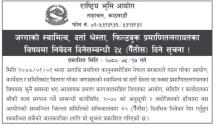 » जग्गाको स्वामित्व, दर्ता श्रेस्ता, फिल्डबुक प्रमाणित लगायतका विषयमा निवेदन दिने सम्बन्धी ३५(पैंतीस) दिने सूचना I