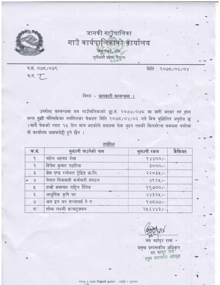 जानकी गा.पा.को आर्थिक वर्ष २०७९.८० को वार्षिक कार्यक्रम.