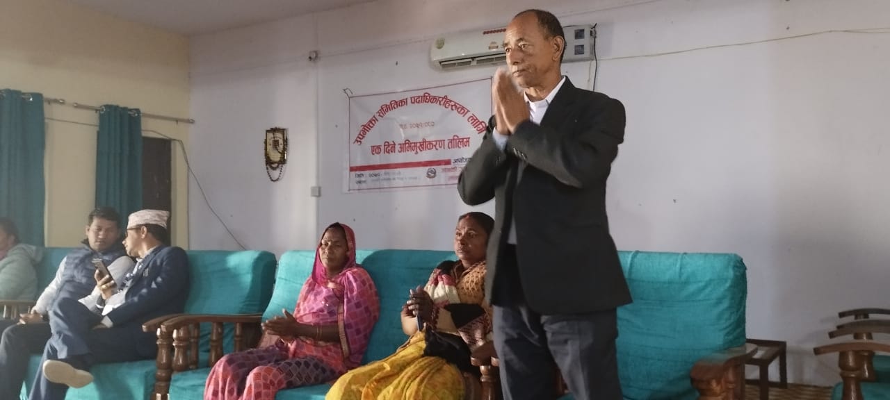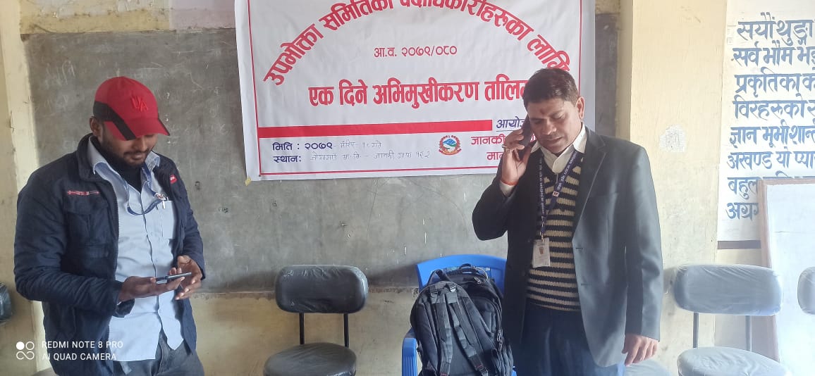 जानकी गाउँपालिकाको आयोजनामा वडा नं.३ र ४ मा आज मिति २०७९ मंसिर १९ गते उपभोक्ता समितिका पदाधिकारीहरुका लागि १(एक) दिने अभिमुखिकरण तालिमका केही तस्बिरहरु.