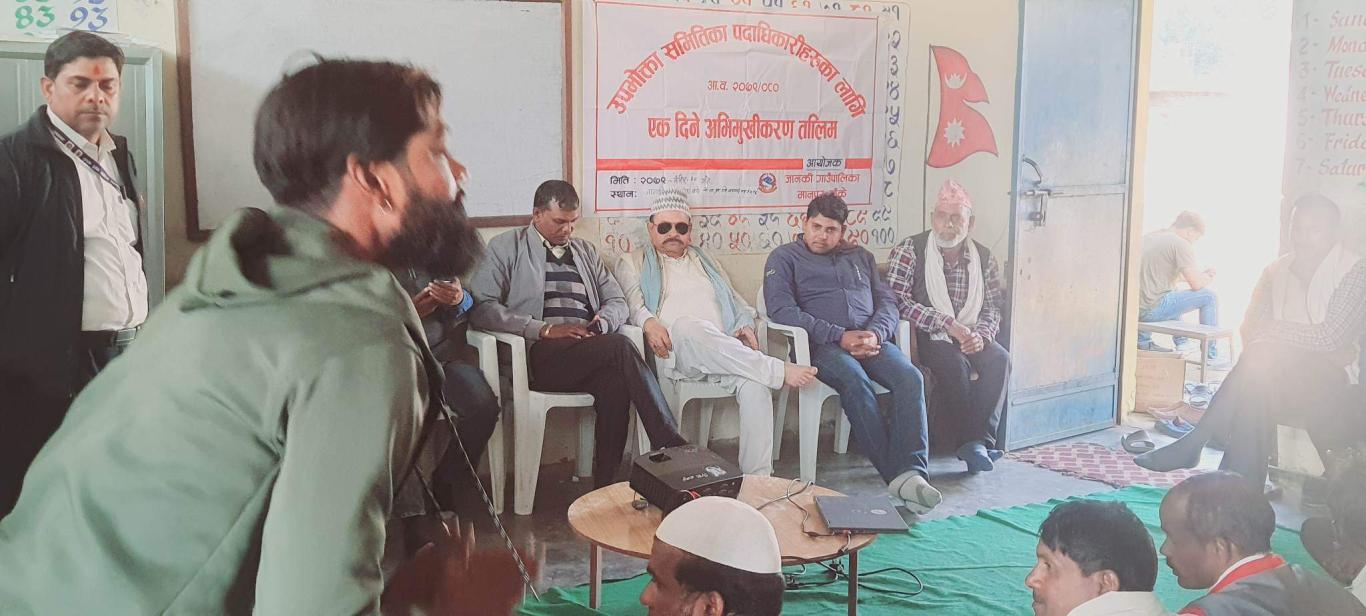 जानकी गाउँपालिकाको आयोजनामा वडा नं.५ र ६ लाई आज मिति २०७९ मंसिर २० गते उपभोक्ता समितिका पदाधिकारीहरुका लागि १(एक) दिने अभिमुखिकरण तालिमका केही तस्बिरहरु.
