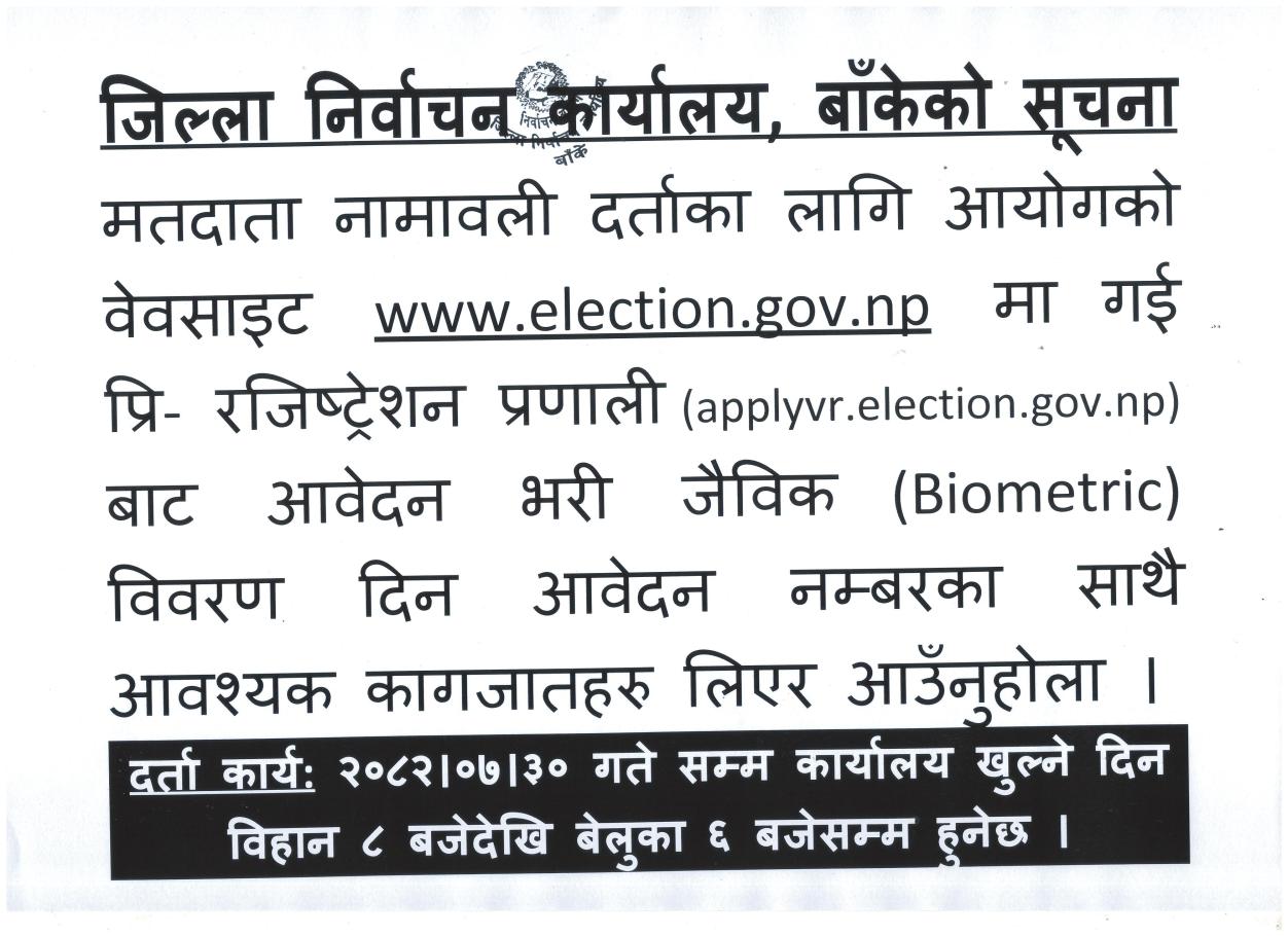जिल्ला निर्वाचन कार्यालय,बाँकेको सूचना.