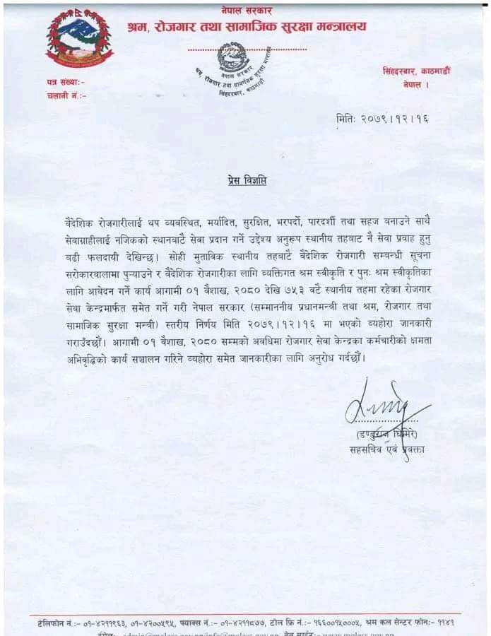 वैदेशिक रोजगार सन्तती छात्रवृत्ति सहायताका लागि निवेदन दिने बारेको सूचना.