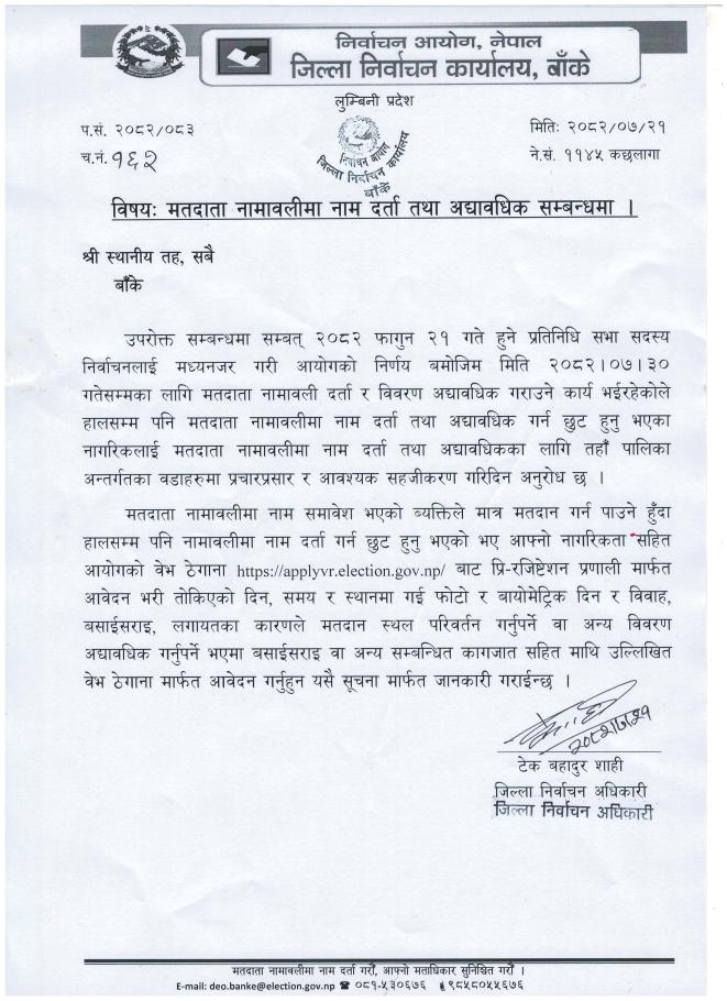 मतदाता नामवलीमा नाम दर्ता तथा अद्यावधिक सम्बन्धमा.