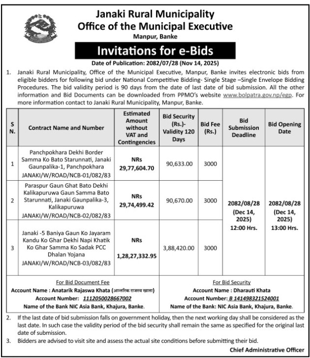 मिति २०८२-०७-२८ गते सौर्य राष्ट्रिय दैनिकमा प्रकाशित बोलपत्र आह्वानको सूचना.