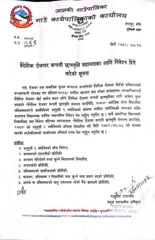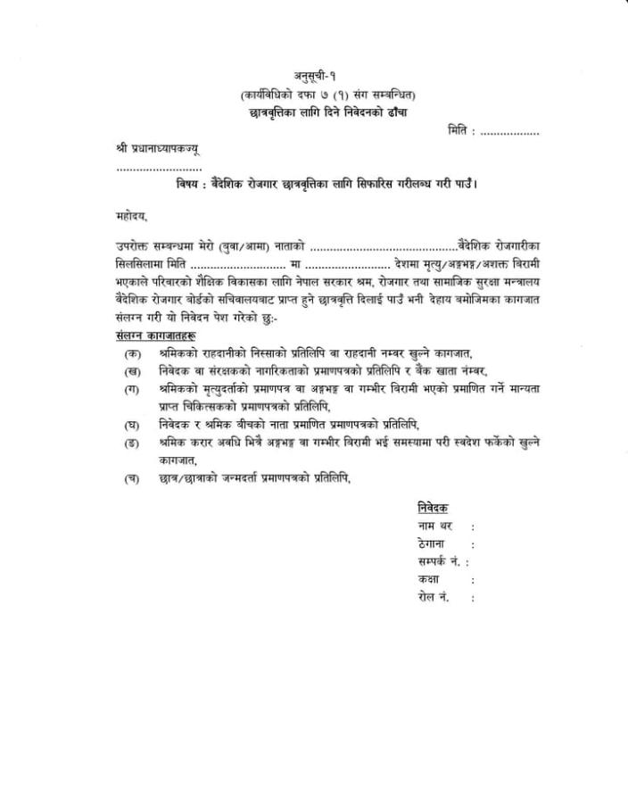 » वैदेशिक रोजगार सन्तती छात्रवृत्ति सहायताका लागि निवेदन दिने बारेको सूचना.