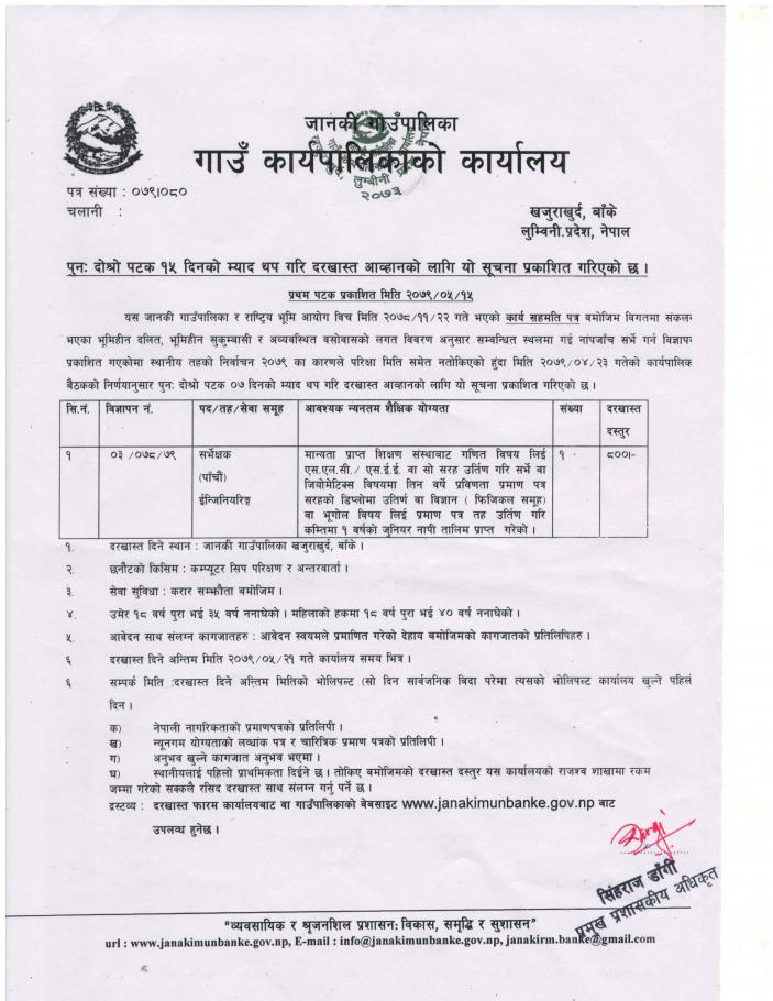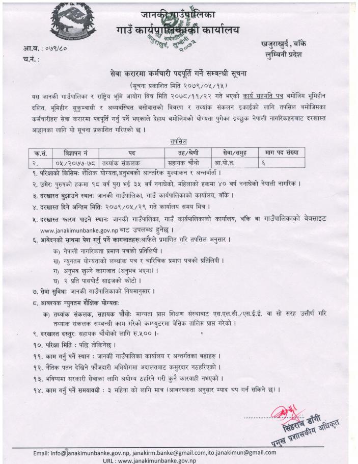 सर्भेक्षक तथा तथ्यांक संकलक पदको करारमा पदपूर्ती गर्ने सम्बन्धी सूचना.साथै सर्भेक्षक तथा तथ्यांक संकलक पदको दरखास्त फारामको ढाँचा.