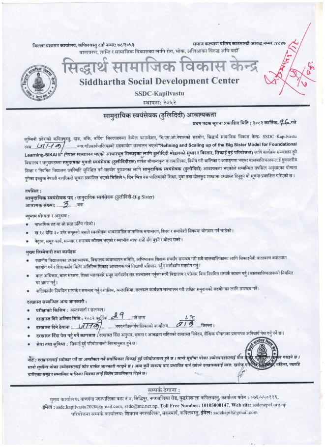 » सामुदायिक स्वयंसेवक (ठुलिदिदी) आवश्यकता सम्बन्धी सूचना.
