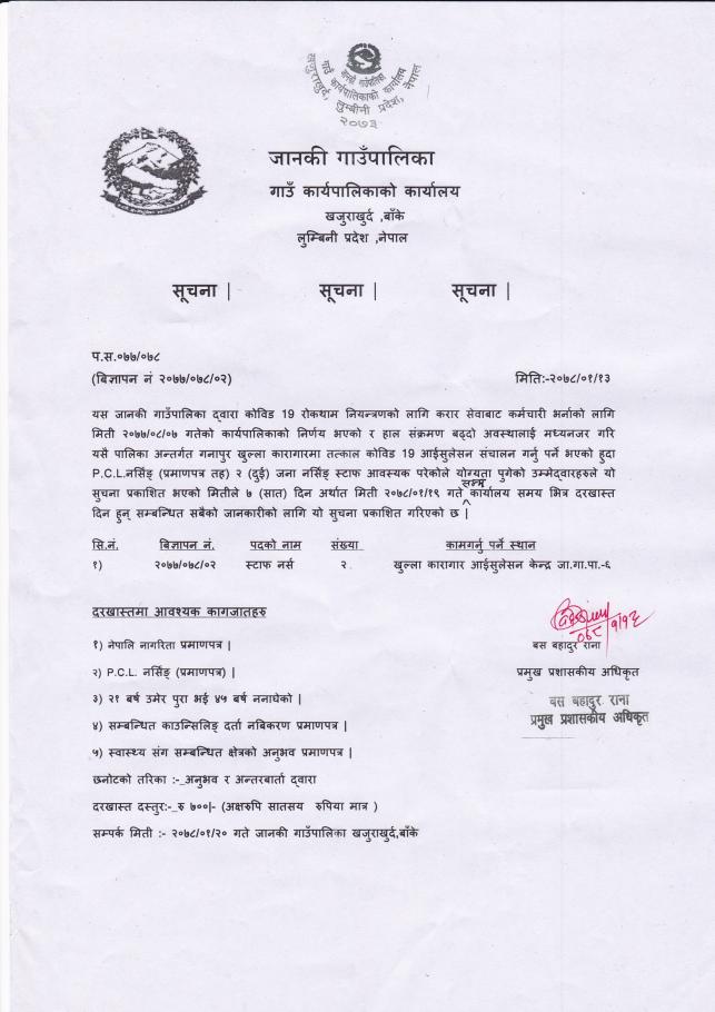 » P.C.L. नर्सिङ पद्पुर्ती सम्बन्धी सूचना.