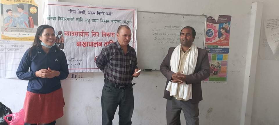 Home » "सिप सिकौ, आत्म निर्भर बनौ" भन्ने मुल नाराका साथ मिति २०७८ फाल्गुन २३ गते जानकी गा.पा अन्तर्गत गरिबी निवारणको लागि लघु उद्यम विकास कार्यक्रम शाखाको आयोजनामा वडा नं. २ बेलभारमा व्यावसायिक सिप विकास तालिम बाख्रापालन तालिमको उद्घाटन कार्यक्रमका तस्बिरहरु.