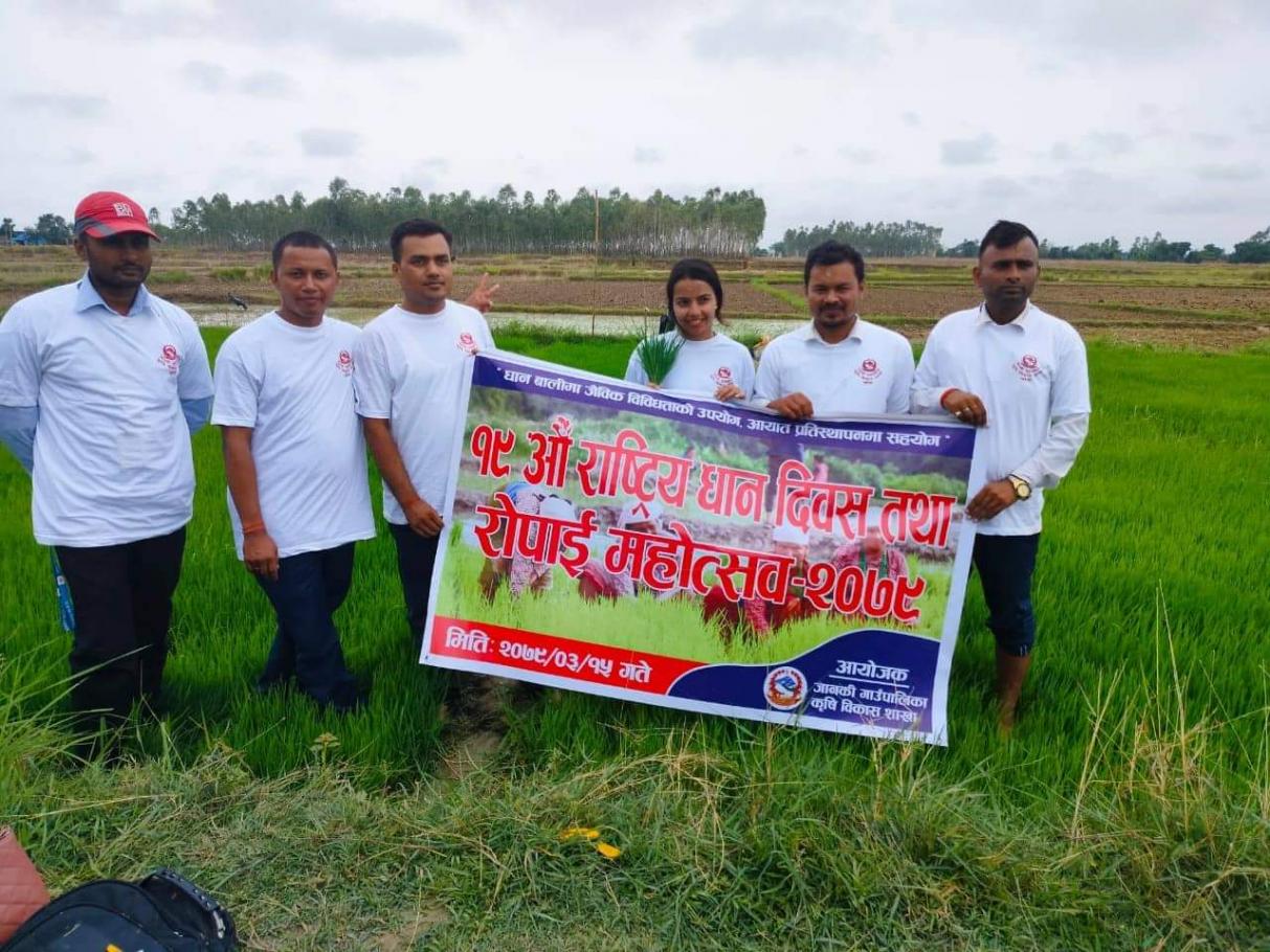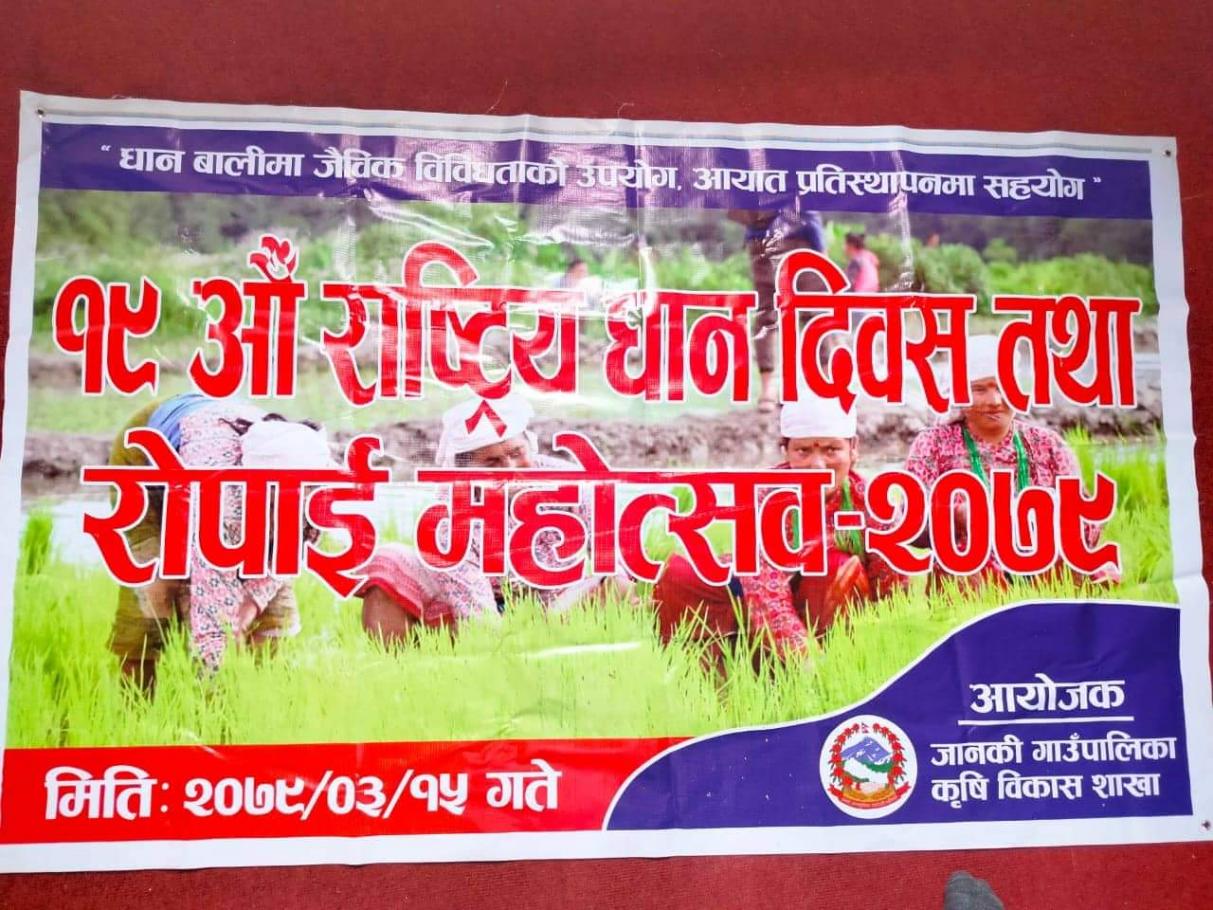 » आज मिति २०७९ असार १५ गते जानकी गा.पा.अन्तर्गत कृषि विकास शाखाको आयोजनामा १९ औं राष्ट्रिय धान दिवस तथा रोपाई महोत्सव - २०७९ का केहि तस्बिरहरु.