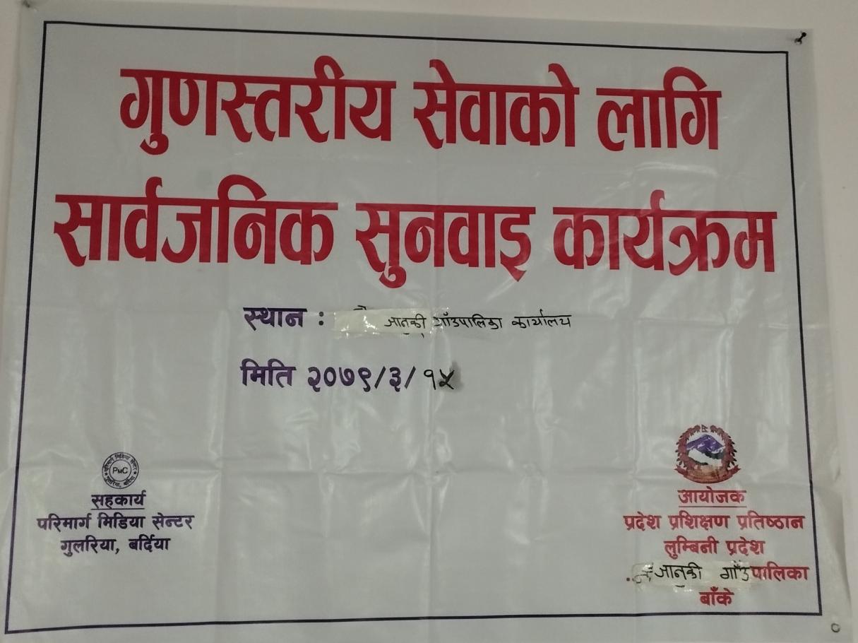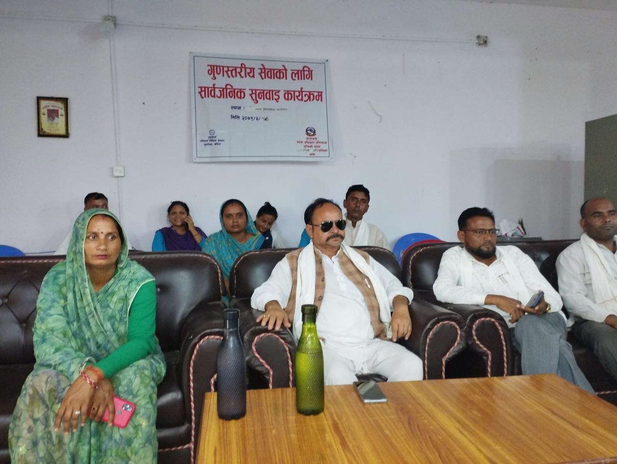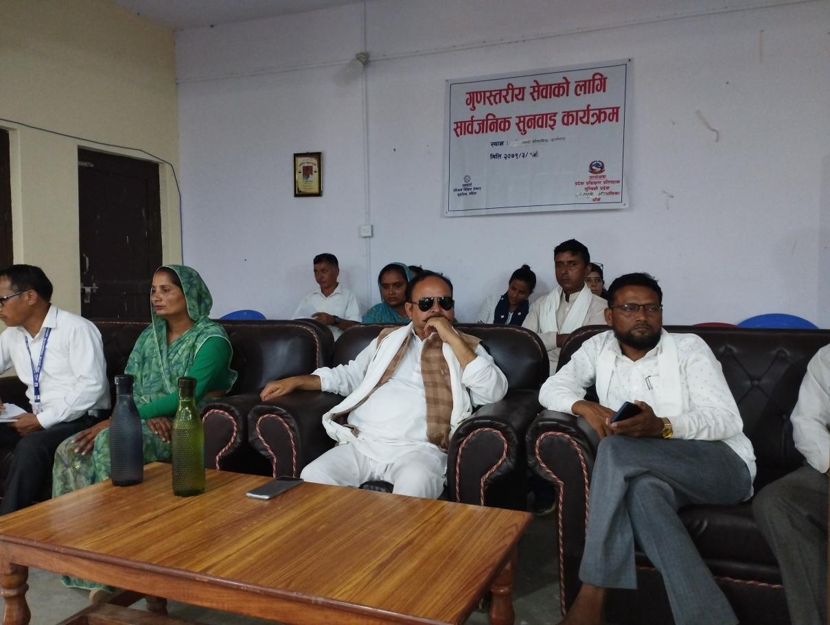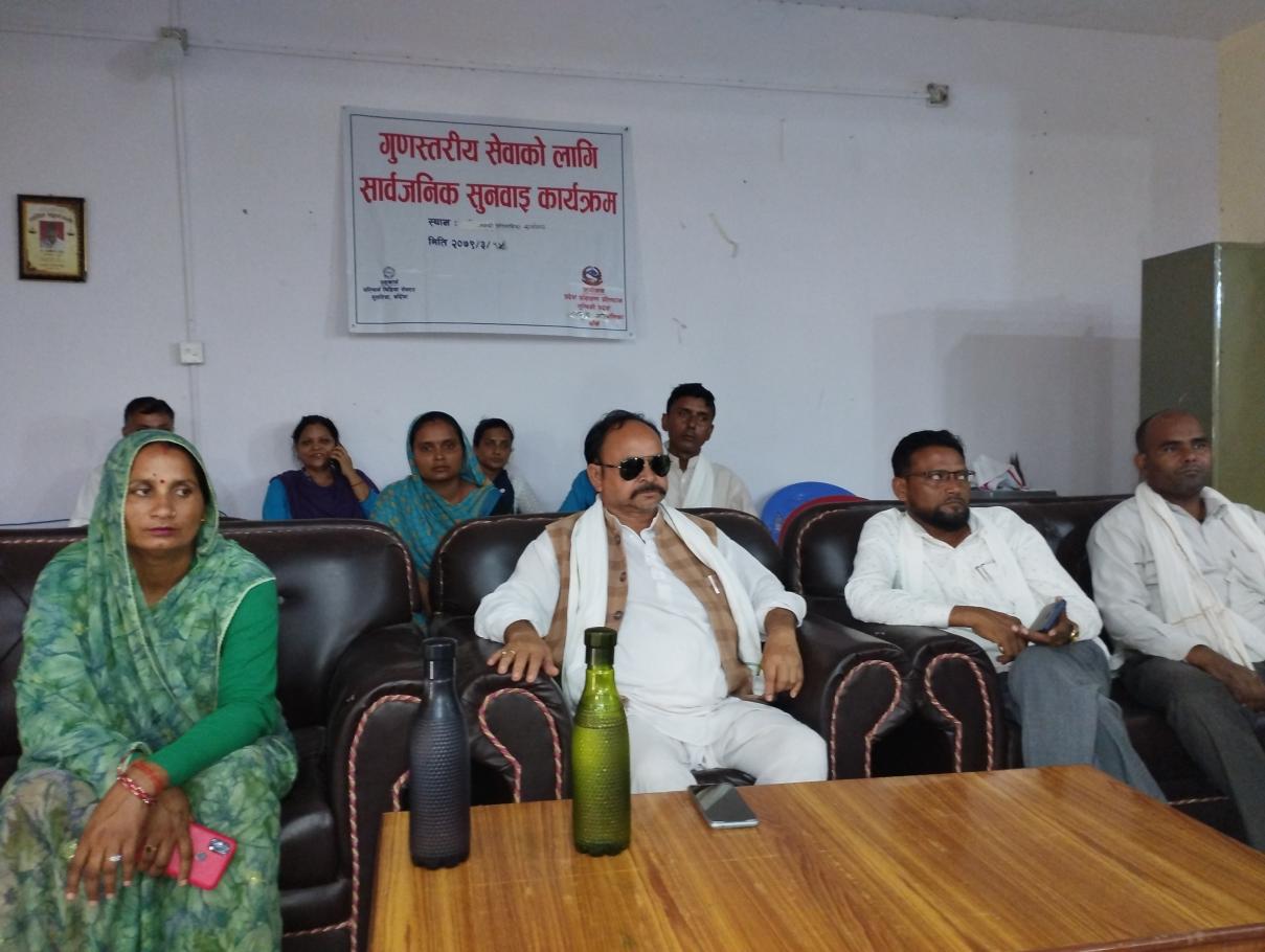 आज मिति २०७९ असार १५ गते प्रदेश प्रशिक्षण प्रतिस्ठान,लुम्बिनी प्रदेश तथा जानकी गा.पा.को आयोजना तथा परिमार्ग मिडिया सेन्टर,गुलरिया बर्दियाको सहकार्यमा गुणस्तरीय सेवाका लागि सार्वजनिक सुनवाइ कार्यक्रमका केही झलकहरु.