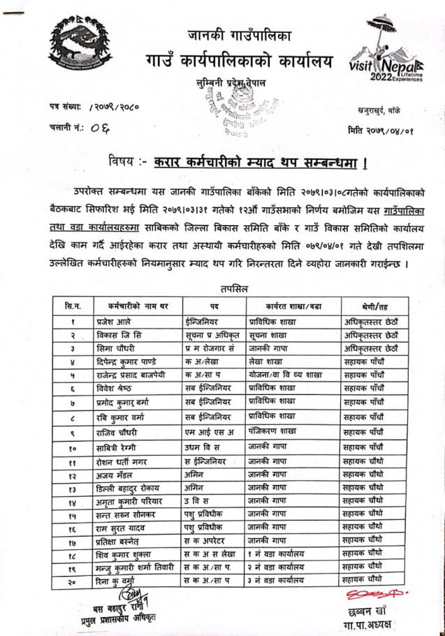 » करार कर्मचारीको म्याद थप सम्बन्धमा |