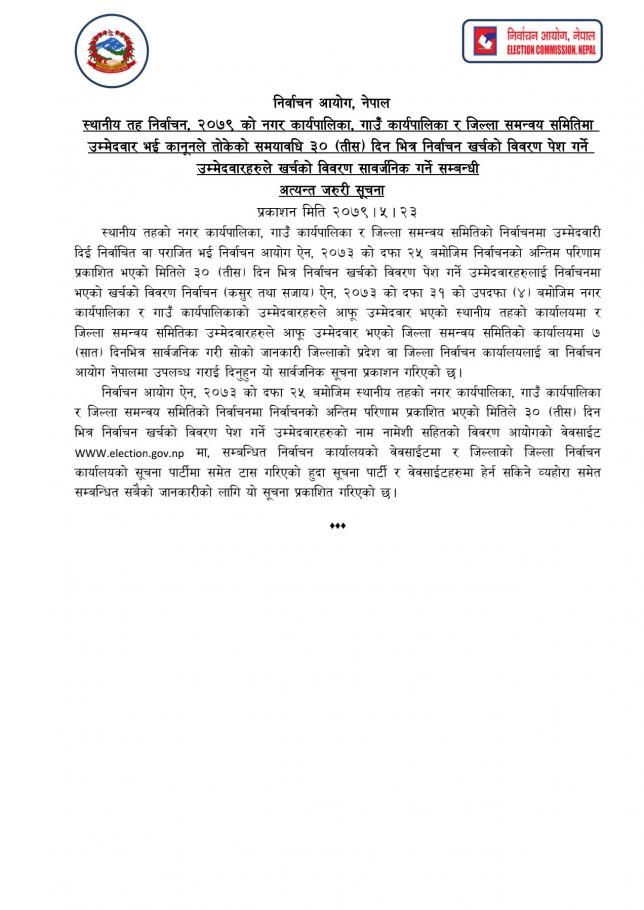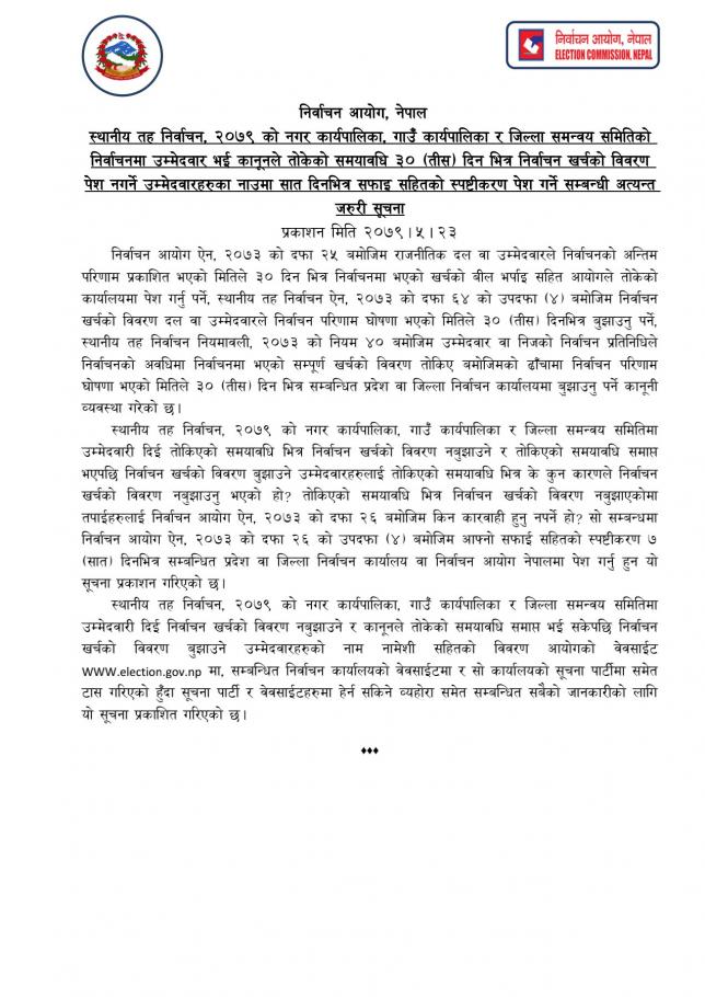 निर्वाचन आयोगको अत्यन्त जरुरी सूचना.(प्रकाशन मिति : २०७९-०५-२३)