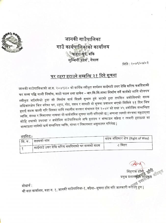 » जानकी गाउँपालिका अन्तर्गत वडा नं. १,२,४ र ५ को सम्बन्धित सबैमा जानकारीको लागि अनुरोध छ.
