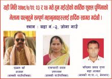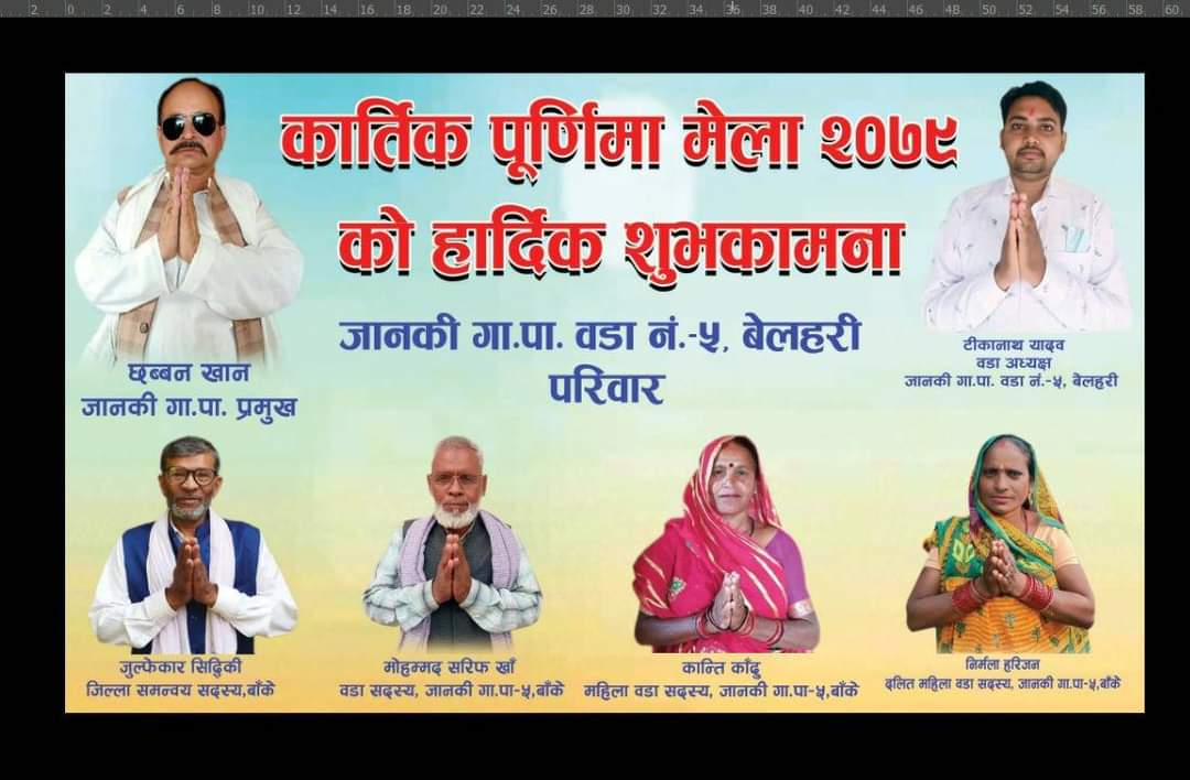 यही मिति २०७९ कार्तिक २२,२३ र २४ गते हुन गईरहेको कार्तिक शुक्ल पुर्णिमाको मेलामा पाल्नुहुने सम्पुर्ण महानुभावहरुलाई हार्दिक स्वागत गर्दछौं.