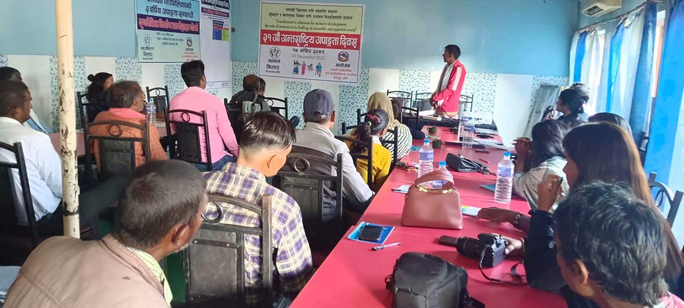 Home » मिति २०७९ मंसिर १७ गते जानकी गाउँपालिकाको आयोजना तथा मिलाप नेपालगन्जको सहजीकरणमा जानकी गाउँपालिकाको ३ बर्षिय अपाङगता सम्बन्धी २(दुई) दिने रणनैतिक निर्माण कार्यशाला गोष्ठीका केही तस्बिरहरु.