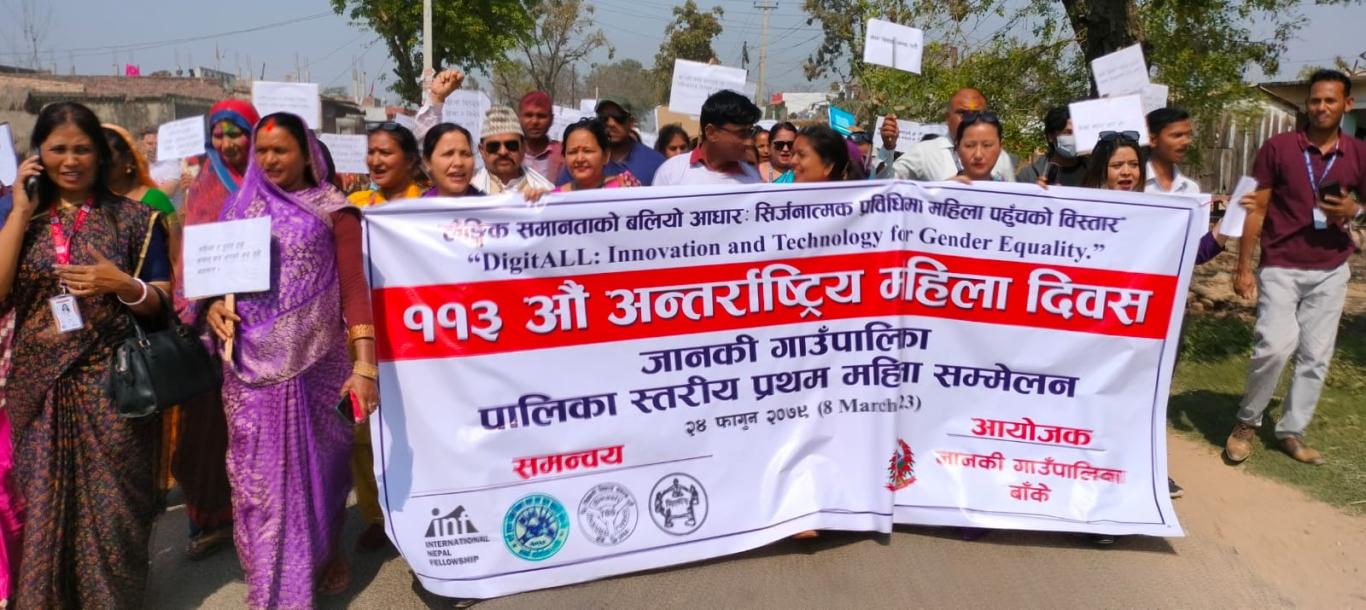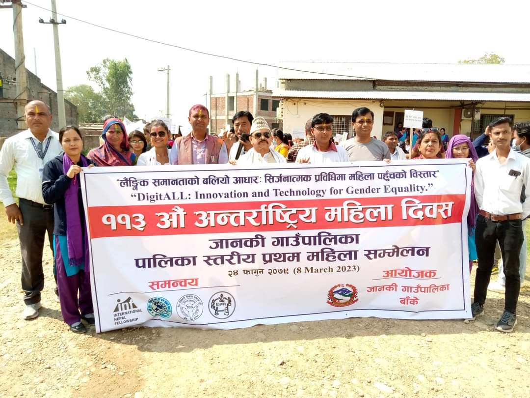 Home » "DigitALL: Innovation and technology for gender equality” भन्ने मुल नाराका साथ आज मिति २०७९ फागुन २४ गते जानकी गा.पा.बाँकेको आयोजनामा भब्य र सभ्यका साथ सम्पन्न ११३ औं अन्तर्राष्ट्रिय महिला दिवस कार्यक्रम तथा र्यालीको केही तस्बिरहरु.