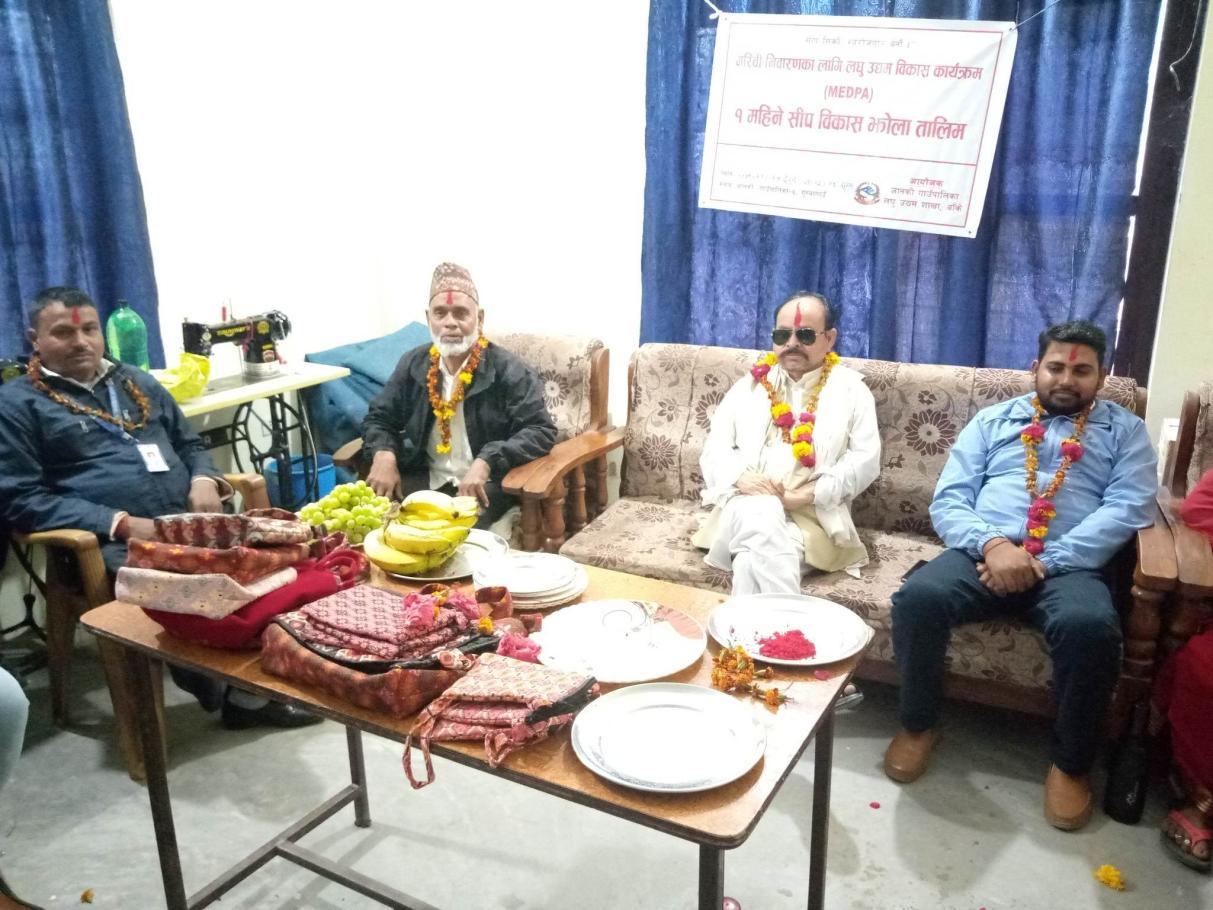 Home » "सिप सिकौ,स्वरोजगार बनौं" भन्ने मुल नाराका साथ जानकी गाउँपालिका अन्तर्गत गरिबी निवारणको लागि लघु उद्यम विकास कार्यक्रम(मेड्पा) शाखाको आयोजनामा वडा नं. ५ गुरुवागाउँमा १ महिने सीप विकास झोला तालिमको समापन कार्यक्रमका केही तस्बिरहरु.