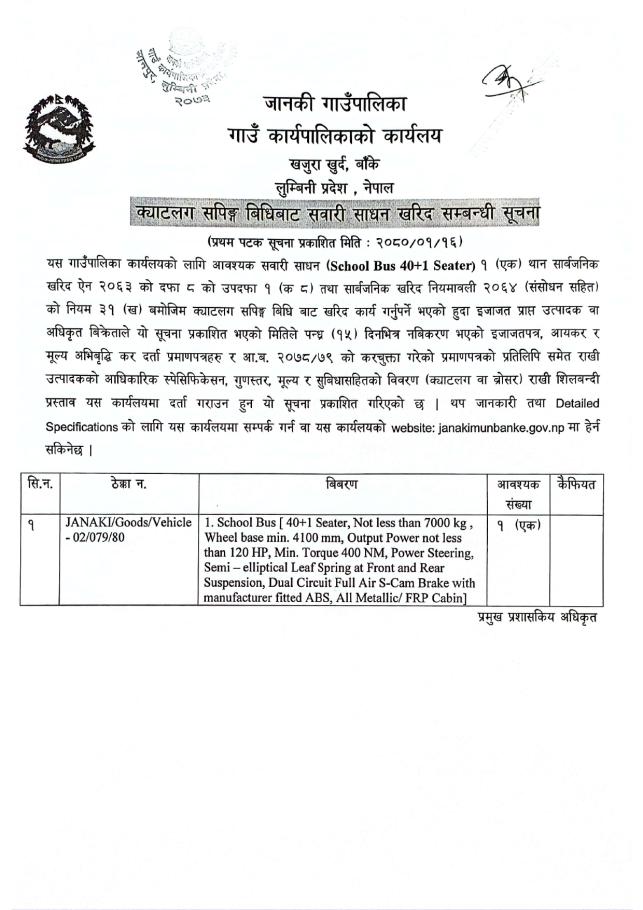 क्याटलग सपिङ्ग बिधिबाट सवारी साधन खरिद सम्बन्धी सूचना.