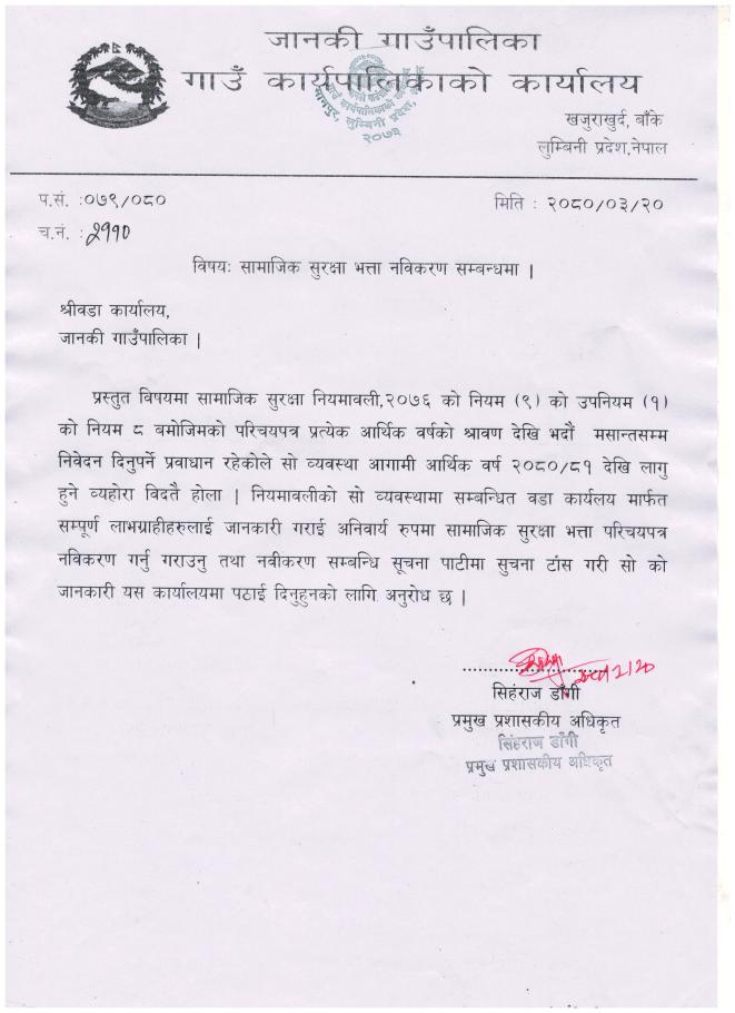 सामाजिक सुरक्षा भत्ता नवीकरण सम्बन्धमा I