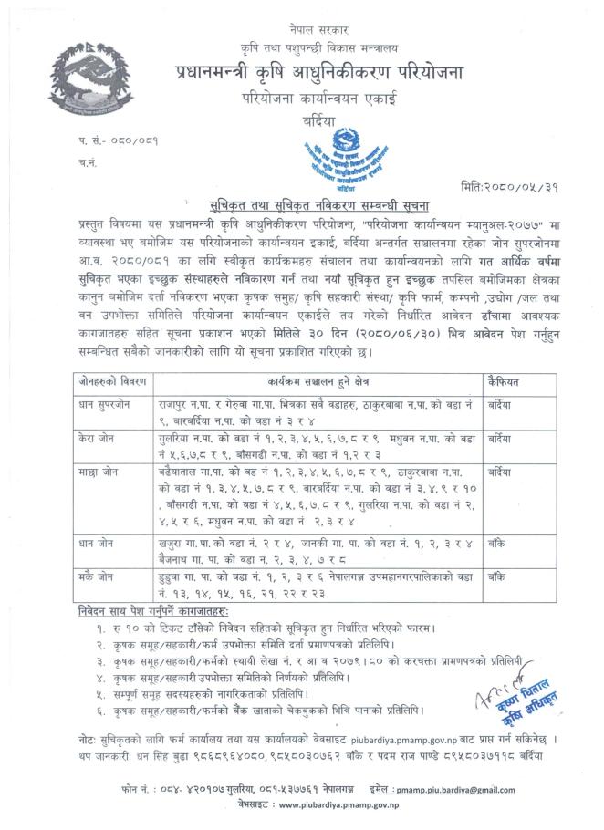 कृषि विकास कार्यक्रम सम्बन्धी प्रस्ताव आह्वानको सूचना.