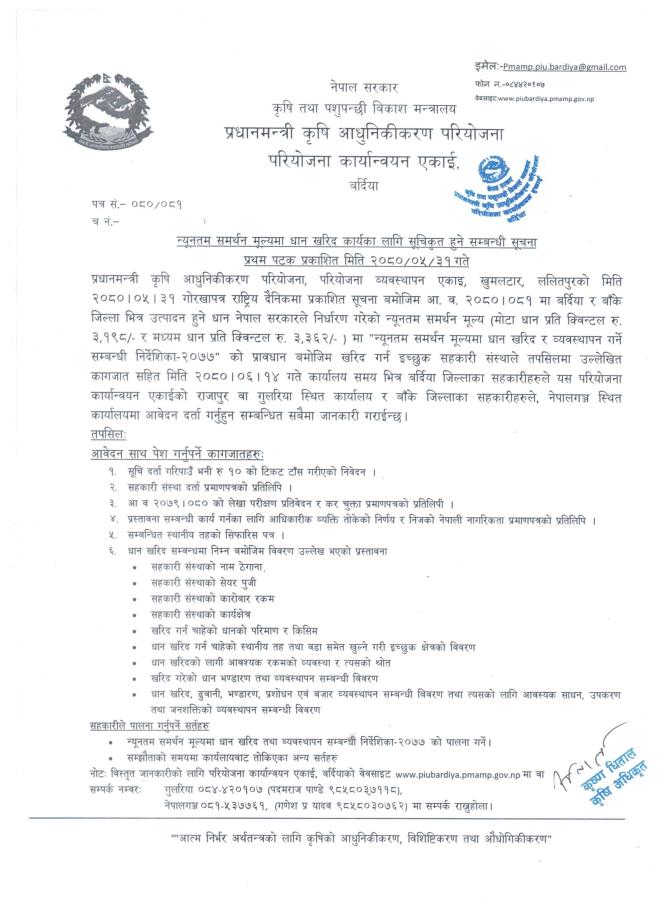 न्यूनतम समर्थन मूल्यमा धान खरिद कार्यका लागि सूचीकृत हुने सम्बन्धी सूचना.