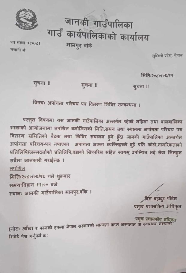 » अपाङ्गता परिचय पत्र वितरण शिविर सम्बन्धमा.