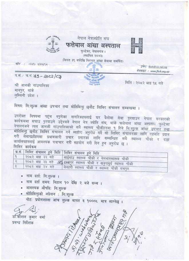 » नि:शुल्क आँखा उपचार तथा मोतिबिन्दु छनौट शिविर संचालन सम्बन्धी सूचना.
