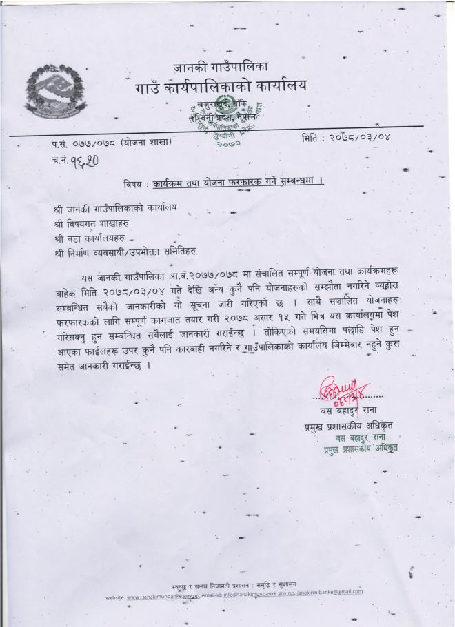 कार्यक्रम तथा योजना फरफारक गर्ने सम्बन्धमा.