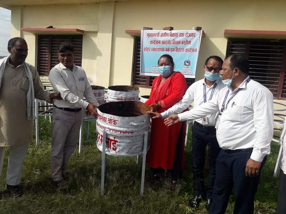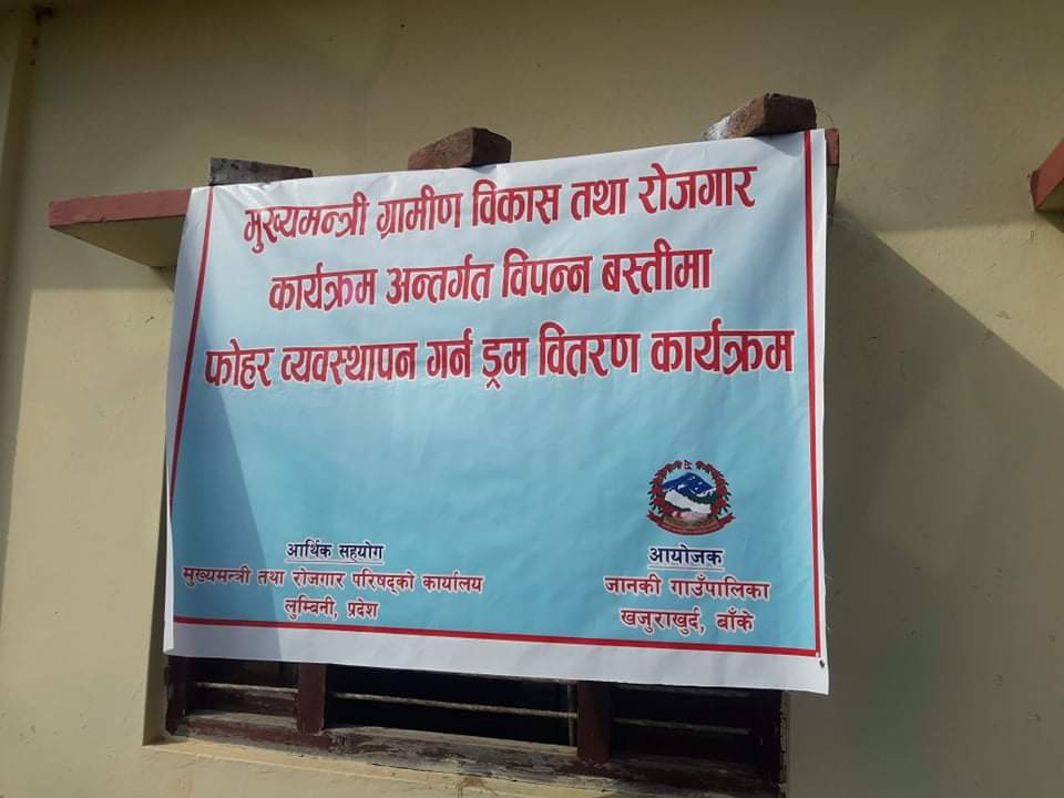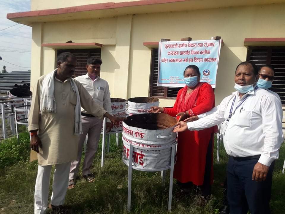 आज मिति २०६८-०३-१४ गते मुख्यमन्त्री ग्रामीण विकास तथा रोजगार कार्यक्रम अन्तर्गत विपन्न बस्तीमा फोहर ब्यवस्थापन गर्न डम वितरण कार्यक्रमका केही झलकहरु.