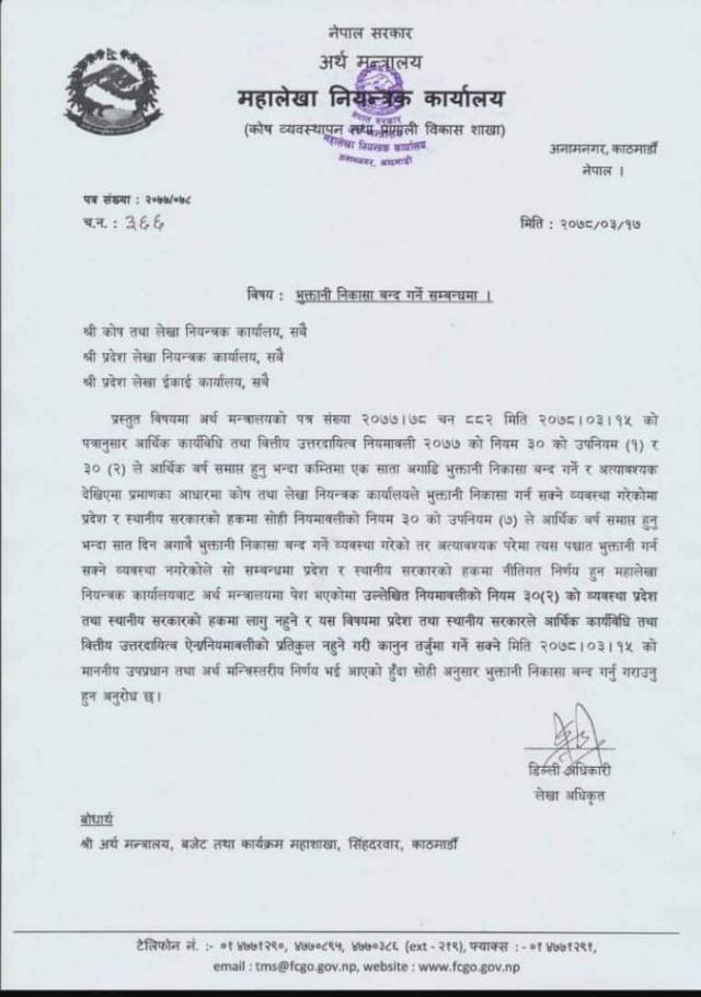 भुक्तानी निकासा बन्द गर्ने सम्बन्धि अत्यन्त जरुरी सूचना.