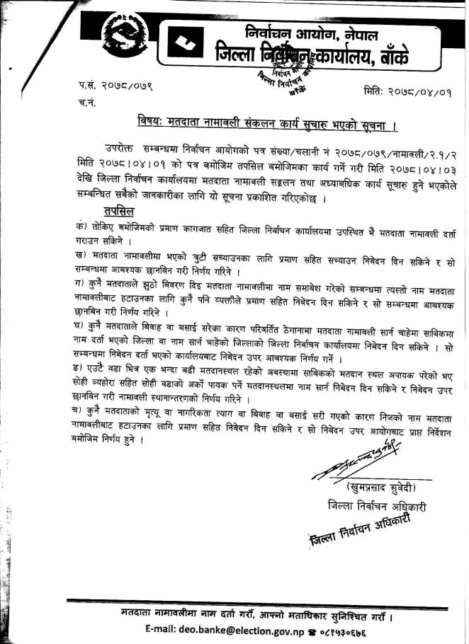 मतदाता नामावली संकलन कार्य सुचारु भएको सूचना.
