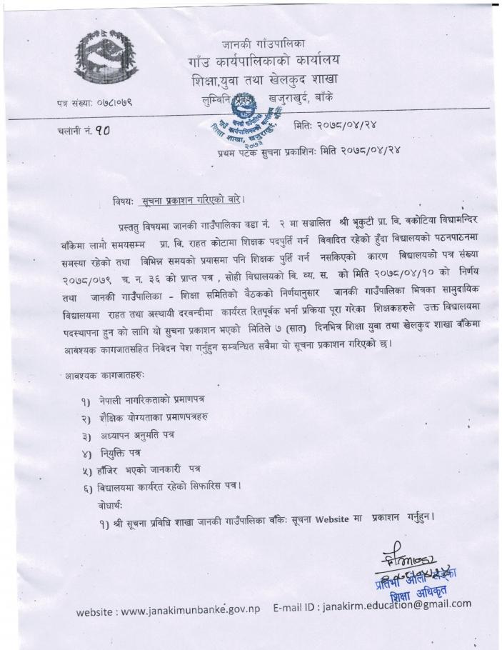 पशु हाटबजार ठेक्का बन्दोबस्त सम्बन्धी सूचना.