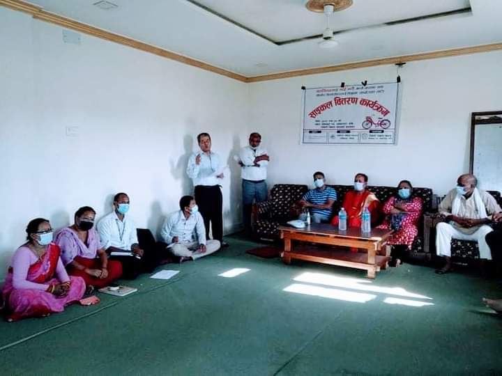 आज मिति २०७८ भाद्र २७ गते त्रिवेणी विकास समाजको आयोजनामा बालविवाहलाई नाई भनौं भन्ने नाराका साथ जानकी गाउँपालिका अन्तर्गत वडा नं. ३,४ र ६ का किशोर किशोरीहरुलाई शिक्षामा सहयोगका लागि साइकल वितरण कार्यक्रमका केही दृश्यहरु.
